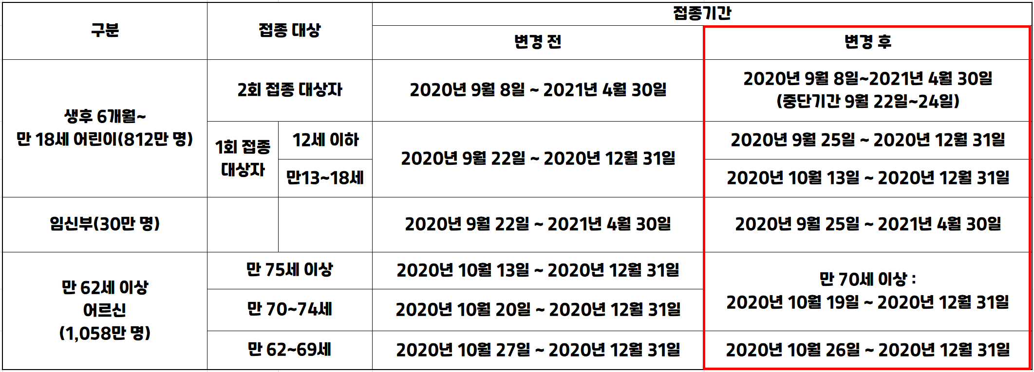 질병관리청에서 실시하는 독감 국가 예방접종은 독감 백신 유통과정에서 문제점이 발견되어 잠정 중단된 상태였으나 10월 13일(화)부터 순차적으로 전국 보건소와 지정 의료기관에서 독감(인플루엔자) 백신 무료 예방접종을 재개한다고 해요.