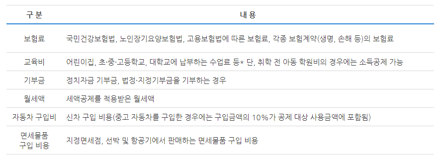 ※ 근로자의 기본공제 대상자가 계약을 한 경우에도 공제 가능함